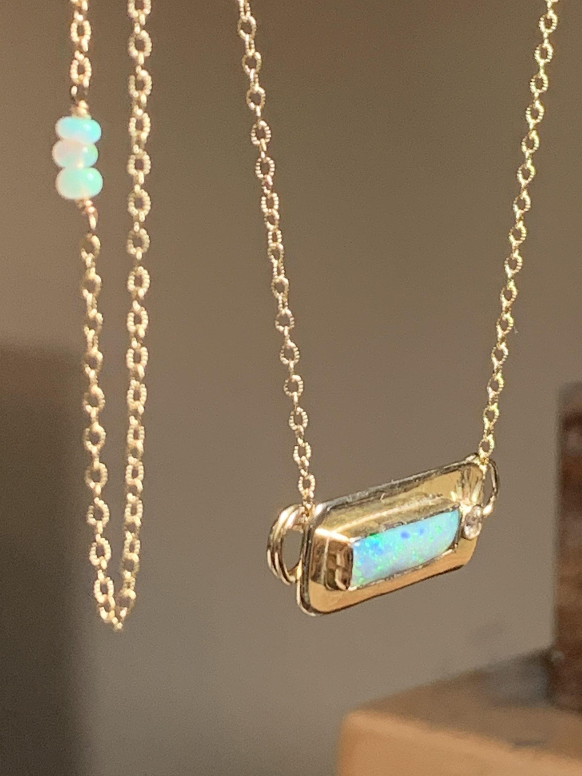The green flash is aptly named after the phenomenon that sometimes (rarely) occurs when the last bit of sun sets on a flat horizon, such as the Gulf of Mexico. If you have seen that, consider yourself very lucky. This opal was sourced through Baystate Opals and this statement is ...