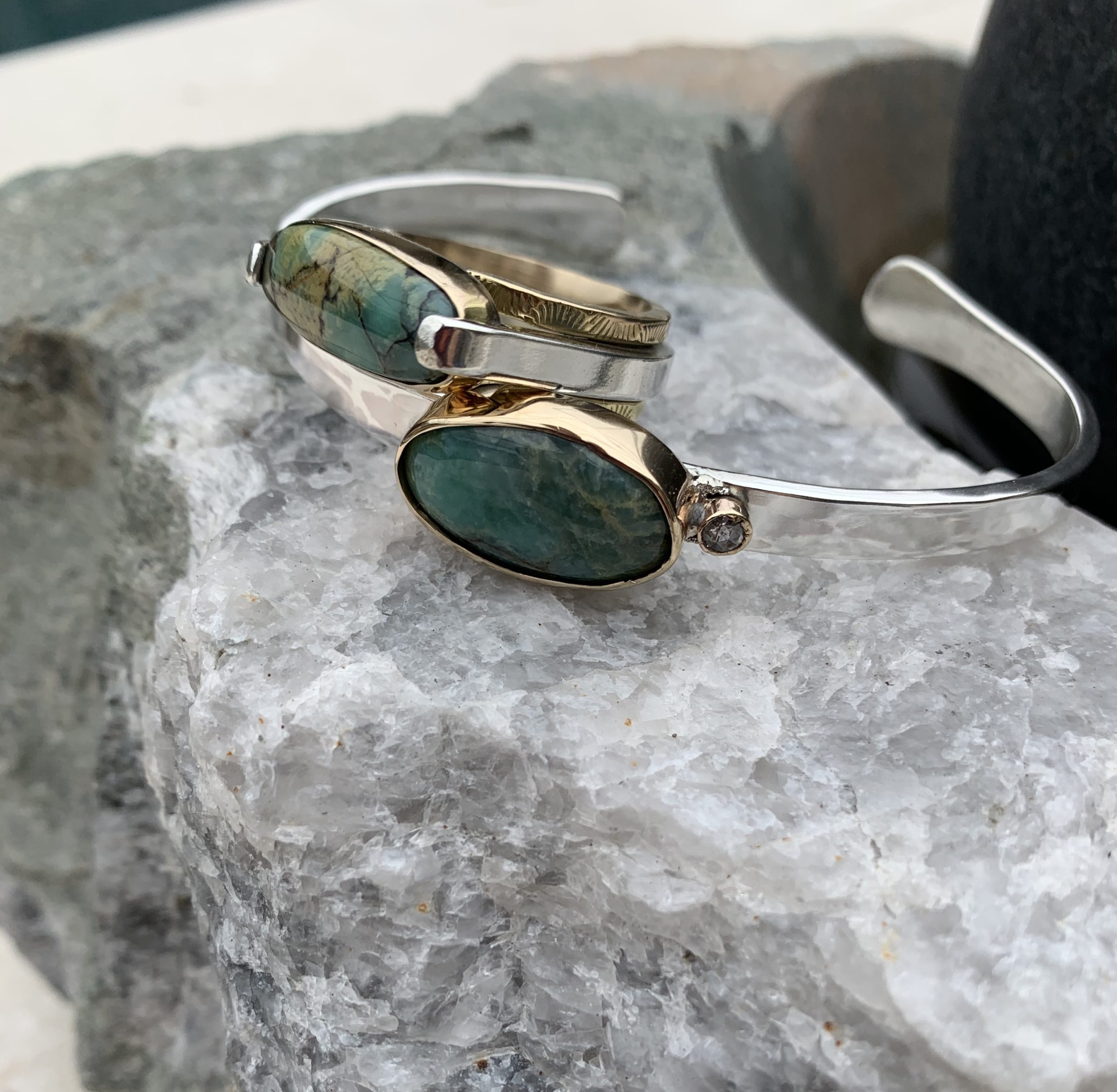 Plan your escape with these rare stones from the 7dwarfs mine in Nevada. Reminiscent of sand dunes and sparkles on the water.